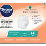 Τα εσώρουχα μιας χρήσης Stroma Pants παρέχουν διακριτική άνεση και αξιόπιστη προστασία απέναντι σε μέτρια & μεγάλης μορφής ακράτεια, σε δραστήριους άνδρες και γυναίκες. Τα εσώρουχα Stroma Pants έχουν πλαϊνά φράγματα ώστε να προσφέρουν σίγουρη προστασία από διαρροές ακριβώς εκεί που χρειάζεται. H υφασμάτινη αεροδιαπερατή εξωτερική επένδυση μειώνει τον κίνδυνο ερεθισμών και κρατάει το δέρμα στεγνό. Η καινοτόμα τεχνολογία Odor Guard μειώνει την δημιουργία οσμών.