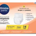 Τα εσώρουχα μιας χρήσης Stroma Pants παρέχουν διακριτική άνεση και αξιόπιστη προστασία απέναντι σε μέτρια & μεγάλης μορφής ακράτεια, σε δραστήριους άνδρες και γυναίκες. Τα εσώρουχα Stroma Pants έχουν πλαϊνά φράγματα ώστε να προσφέρουν σίγουρη προστασία από διαρροές ακριβώς εκεί που χρειάζεται. H υφασμάτινη αεροδιαπερατή εξωτερική επένδυση μειώνει τον κίνδυνο ερεθισμών και κρατάει το δέρμα στεγνό. Η καινοτόμα τεχνολογία Odor Guard μειώνει την δημιουργία οσμών.